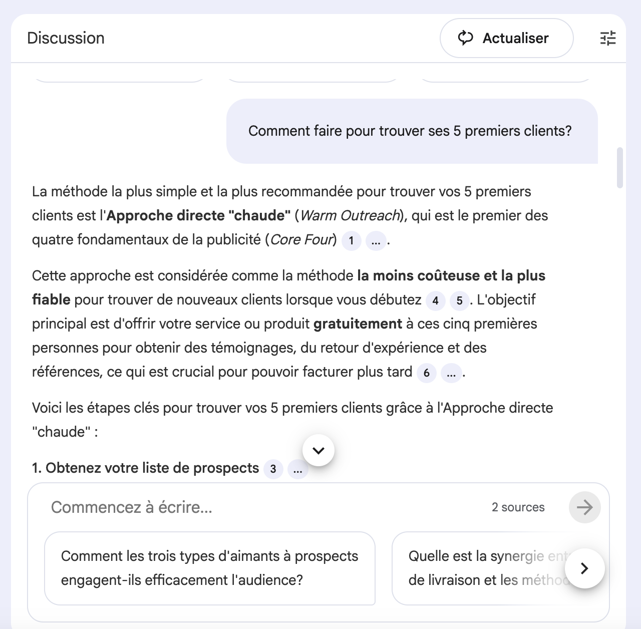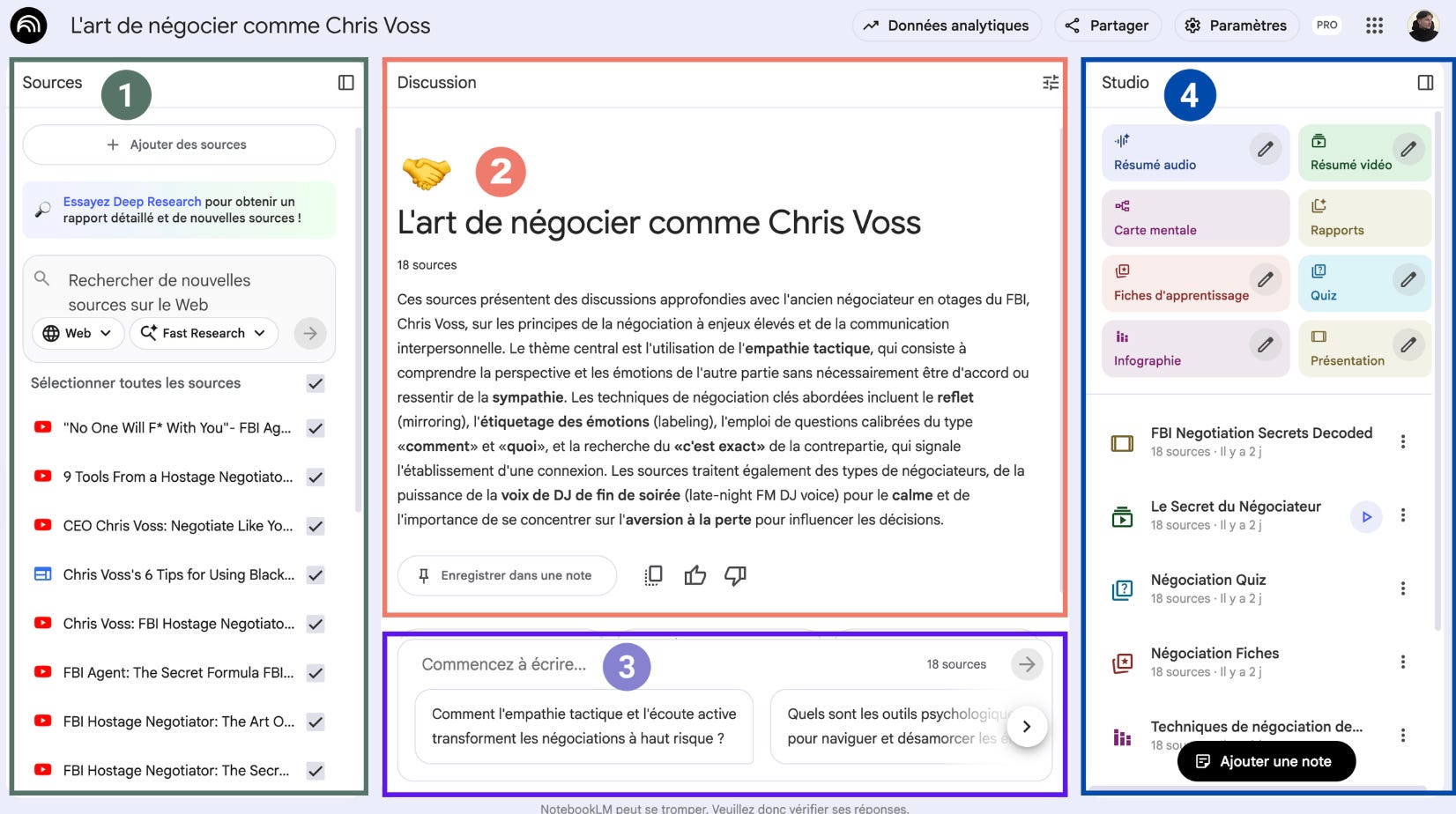 Et contrairement à ChatGPT, NotebookLM montre exactement quelle source est utilisée pour chaque information.