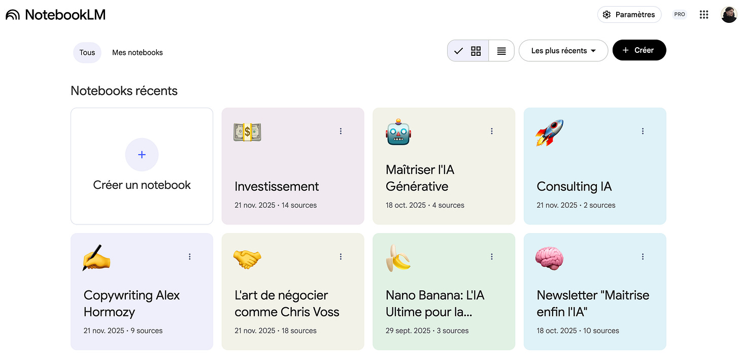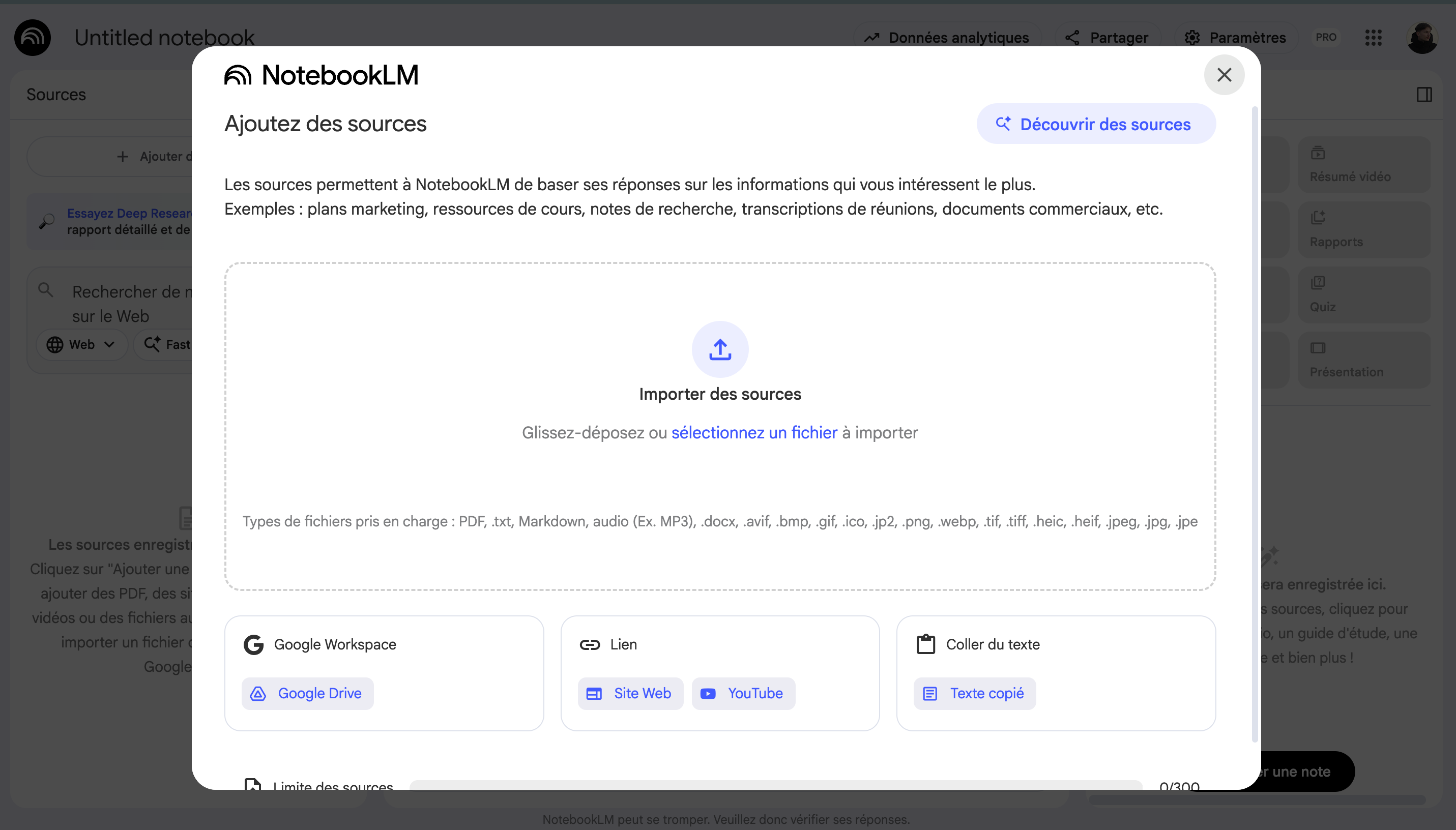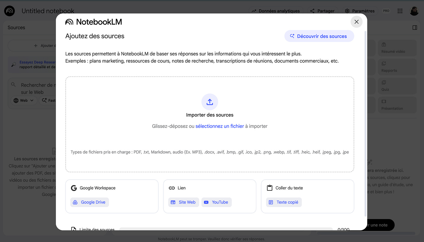 NotebookLM est l’outil de Google qui permet de créer une IA spécialisée, alimentée uniquement par vos propres sources :